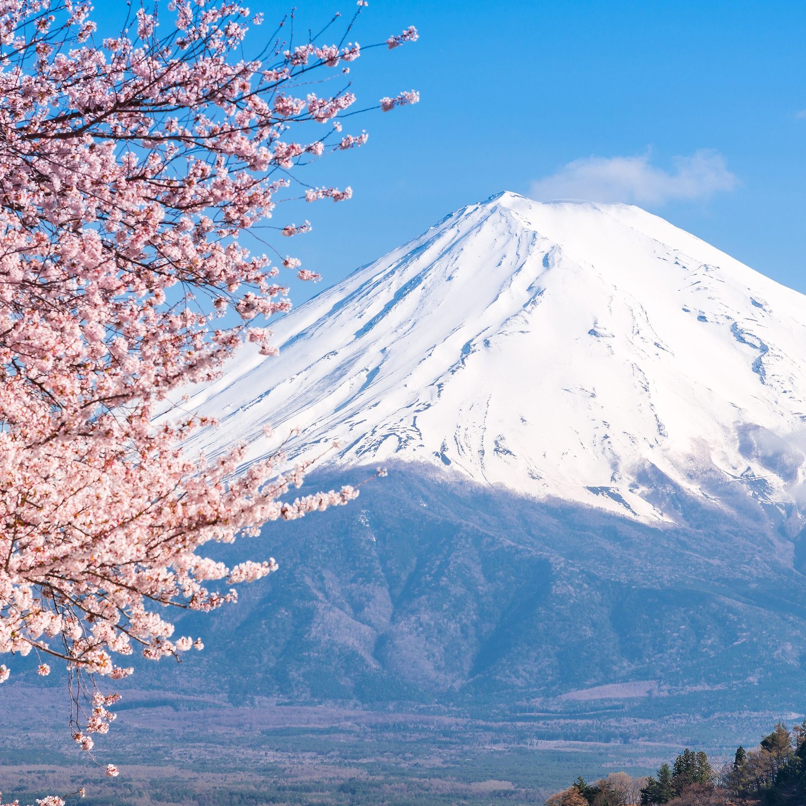 Morning: Witness cherry blossoms clinging to Mt. Fuji's volcanic foothills, where pink petals contrast with the mountain's eternal snow.