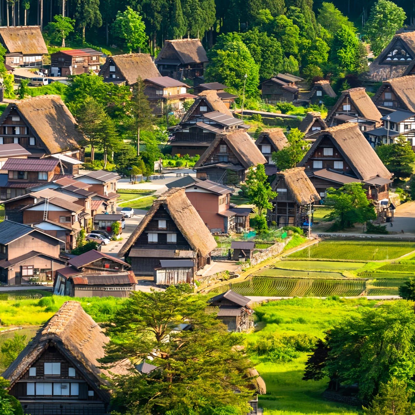 Morning: Wander through Shirakawa-go Village's UNESCO-listed gassho-zukuri farmhouses where cherry blossoms crown ancient thatched roofs like pink snowcaps against mountain peaks.