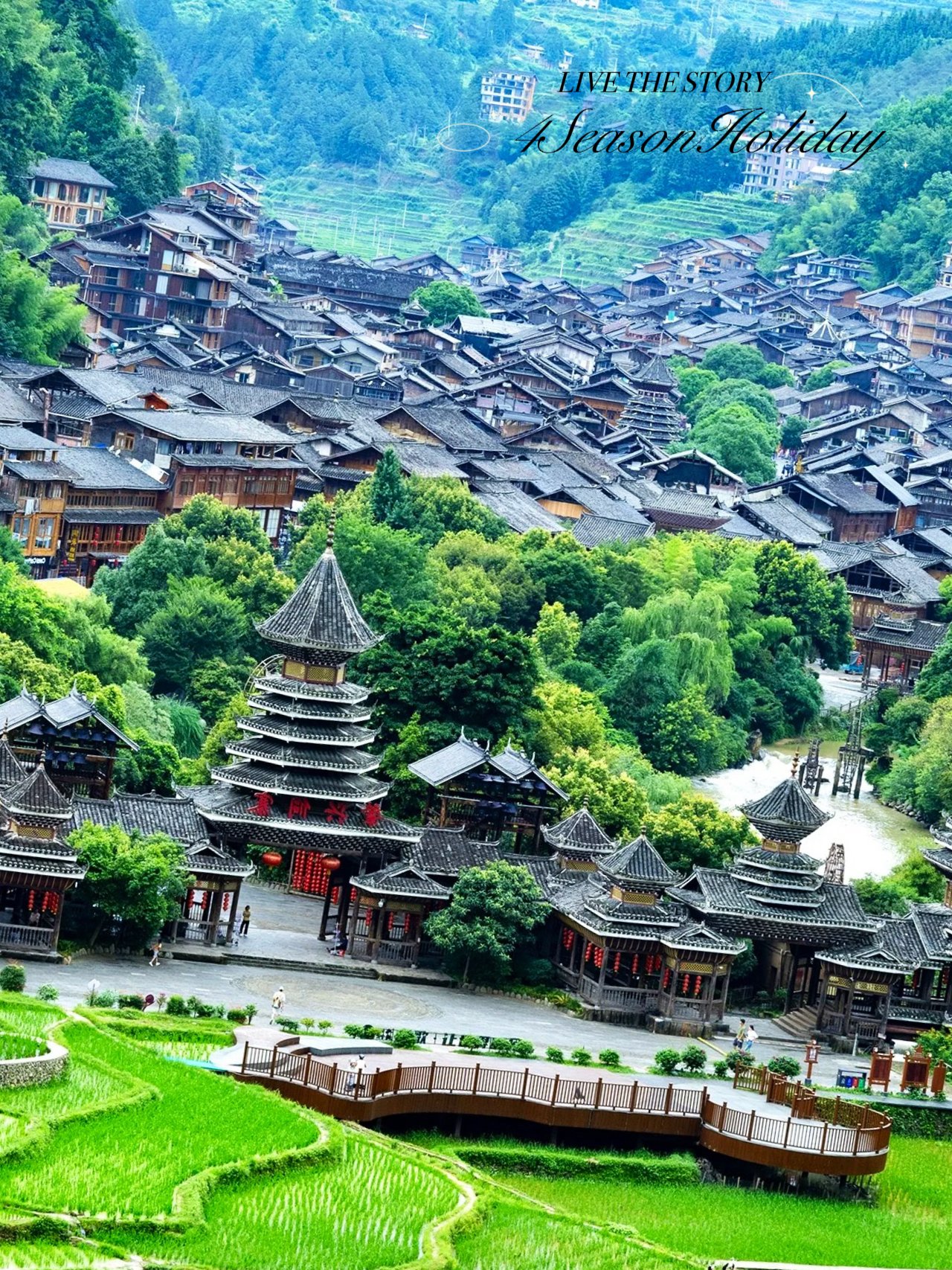 Morning: Dong village exploration with drum towers and wind-rain bridges. The wind-rain bridges are built without nails using mortise-tenon joints.